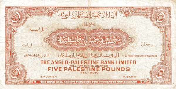 Israel 5 Palestine Pounds / Lirot 1948 P16