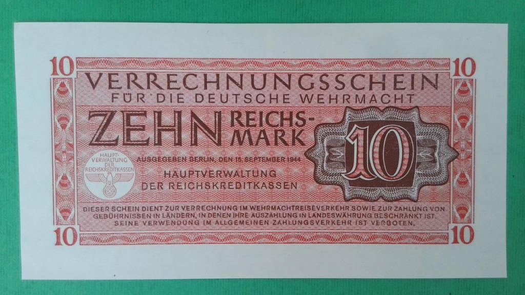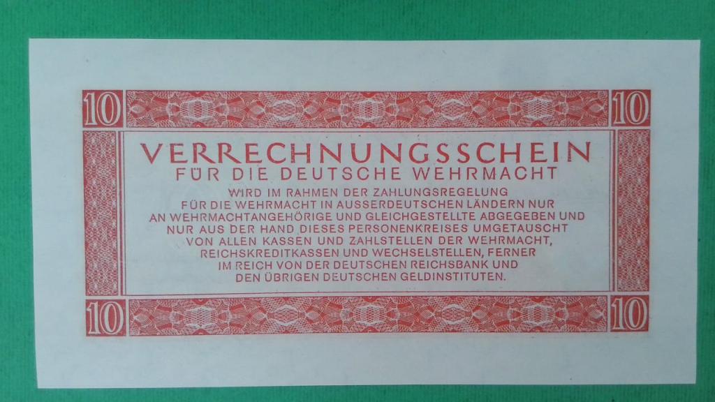 | Notas: | Verrechnungsschein (Clearing Note) Intended for payments within the Wehrmacht Superseded the 1942 "Behelfszahlmittel" (Auxiliary payment certificates), GERMANY M32-37 |