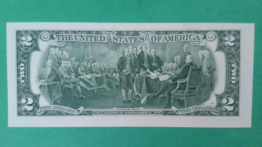 Informacion del reverso: | Signing of the Declaration of Independence (painting by Trumbull) |
